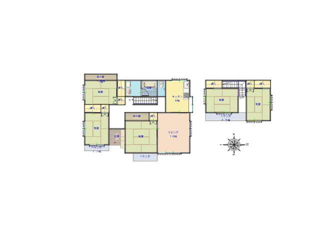 | 詳細間取 | 6DK (1階:洋10帖×1、1階:和8帖×1、1階:和6帖×2、2階:和6帖×2、DK6帖) | ||